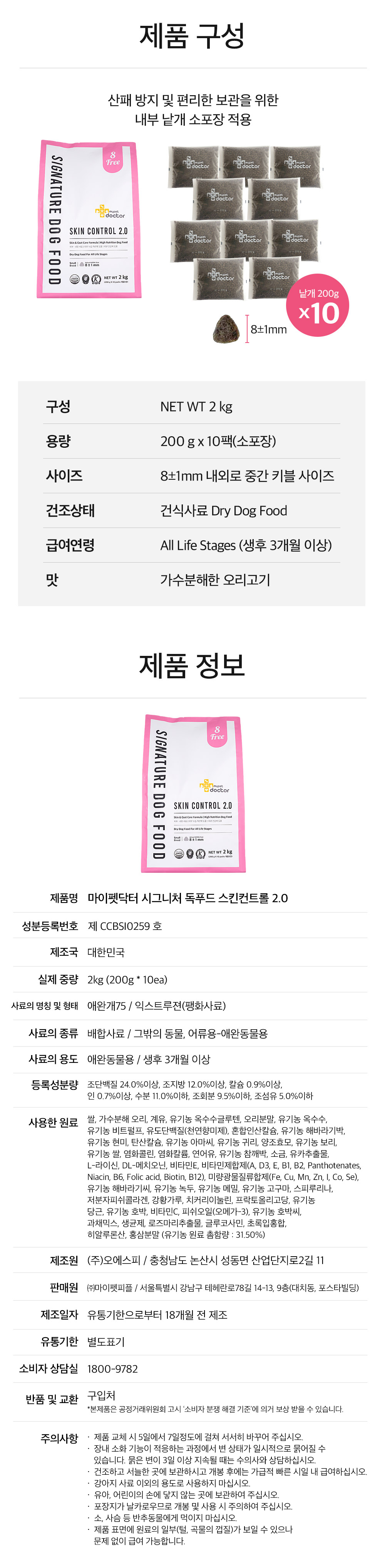마이펫닥터 시그니처 스킨 컨트롤 2.0 2kg