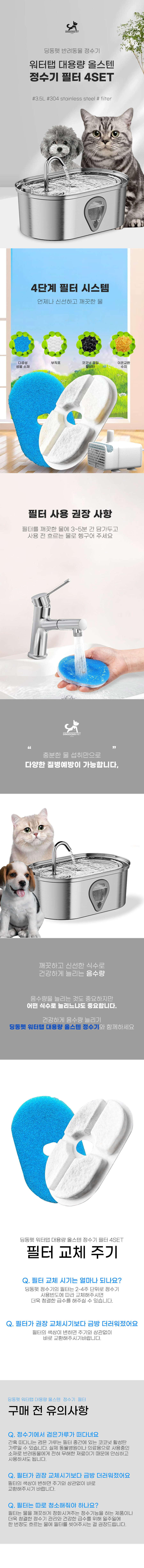 딩동펫 워터탭 대용량 올스텐 정수기 필터 4p 세트