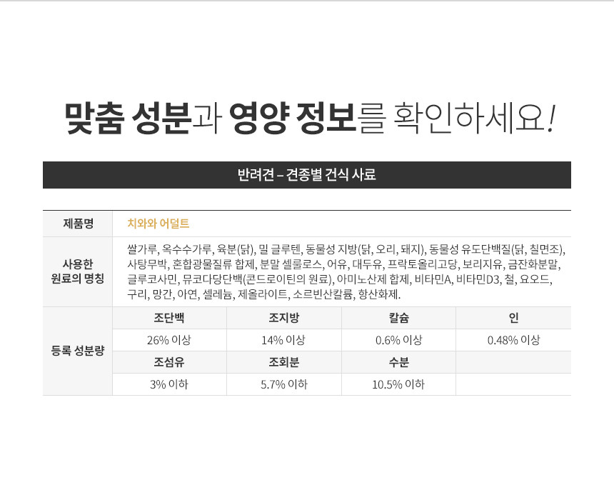 이 기준은 여러 국가와 지역에 적용되어 사실상 세계 표준으로 여겨지고 있습니다. AAFCO 기준 충족은 강아지 주식의 역할을 하는 사료로써 최소한의 영양 기준을 충족했다는 의미입니다.
