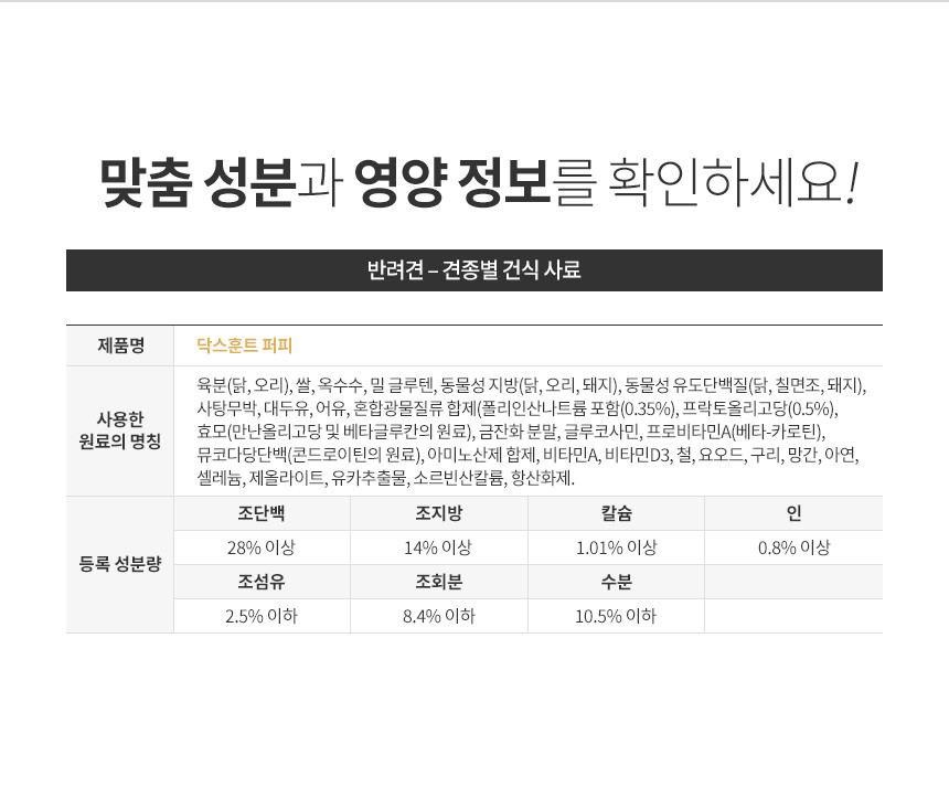 이 기준은 여러 국가와 지역에 적용되어 사실상 세계 표준으로 여겨지고 있습니다. AAFCO 기준 충족은 강아지 주식의 역할을 하는 사료로써 최소한의 영양 기준을 충족했다는 의미입니다.