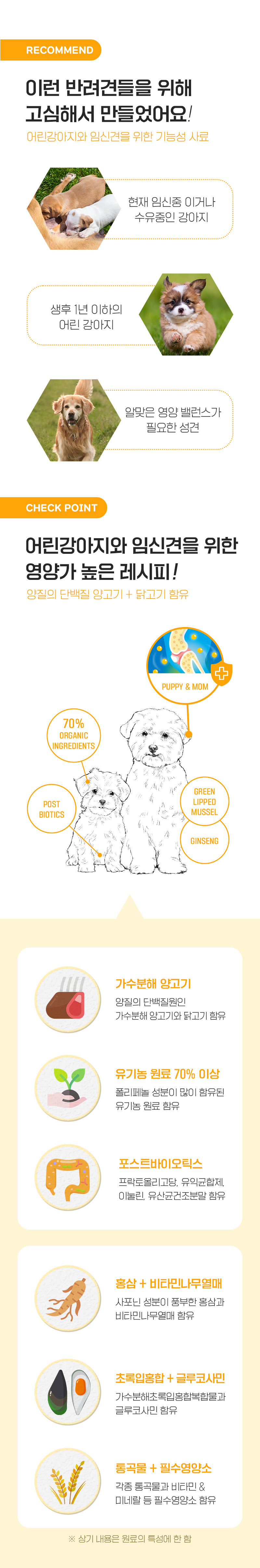 이 기준은 여러 국가와 지역에 적용되어 사실상 세계 표준으로 여겨지고 있습니다. AAFCO 기준 충족은 강아지 주식의 역할을 하는 사료로써 최소한의 영양 기준을 충족했다는 의미입니다.