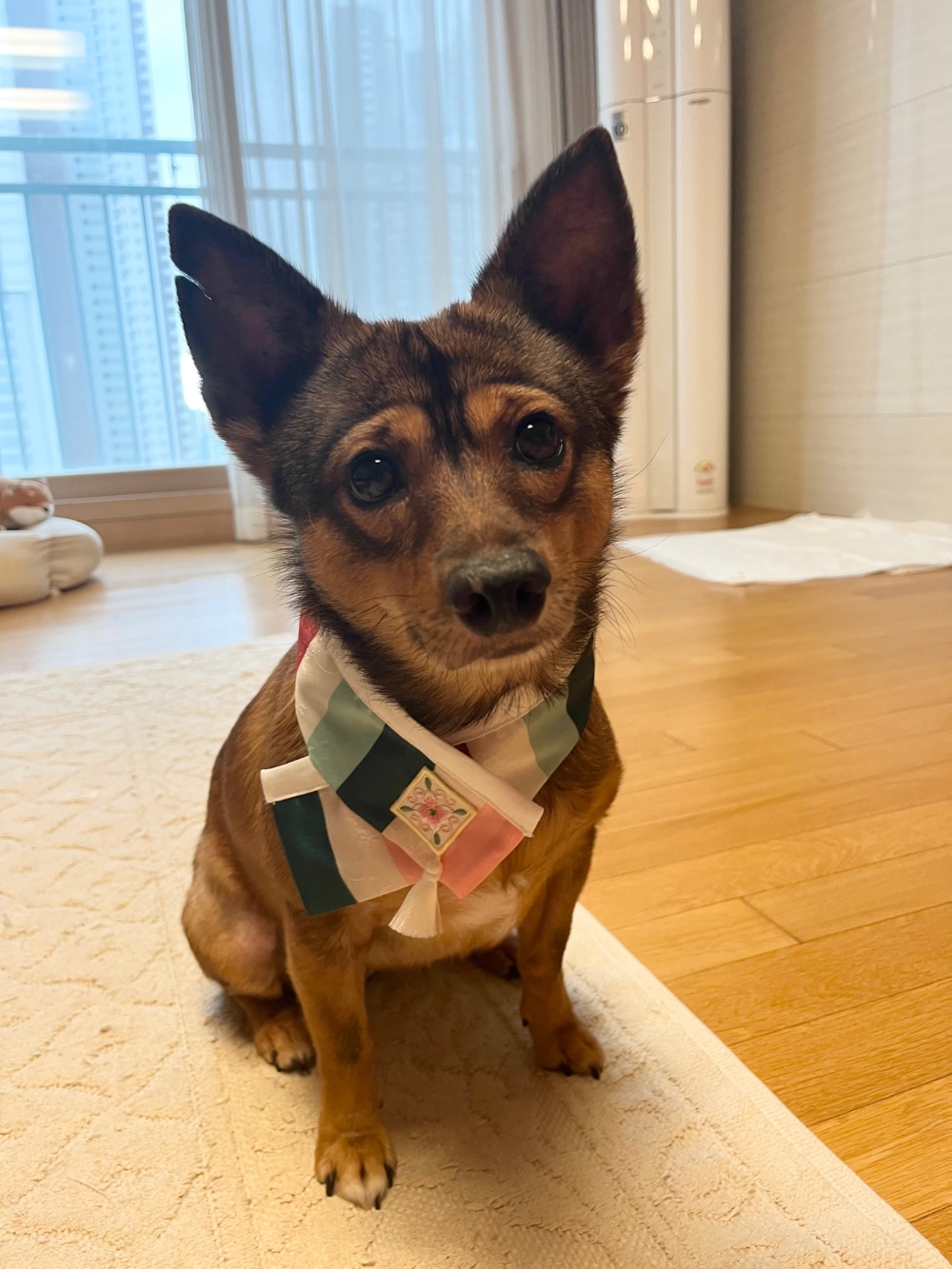 이츠독 색동자수 한복 케이프 민트